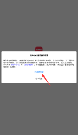 首次启动软件时,系统会弹出服务协议和隐私政策,用户需仔细阅读并点击同意进入主界面。