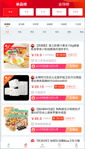 在首页的优惠榜单专区浏览当前热销商品及可领取的优惠券信息,选择心仪商品后进入详情页,点击立即领券获取专属折扣优惠。