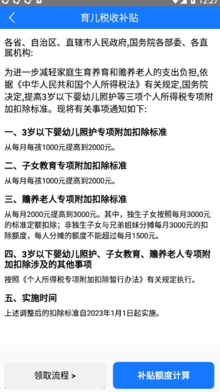 首页点击“育儿税收补贴”,了解相关信息。