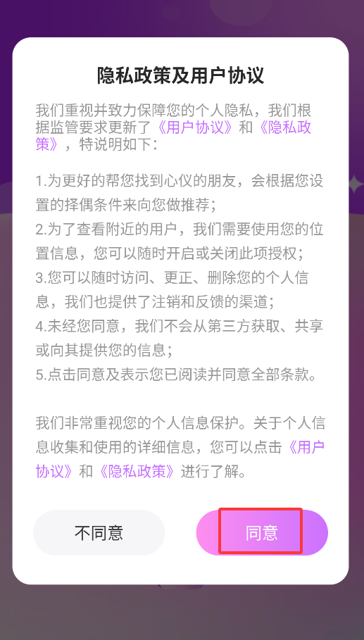 首次启动软件时,需确认用户协议,点击同意后进入主界面。
