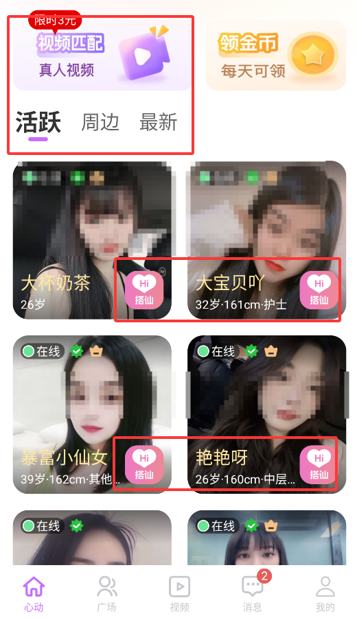 智能推荐中心根据匹配度、活跃度和距离等多种条件筛选用户,可通过心动模式快速筛选,操作简单直观。