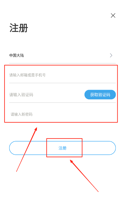 输入手机号获取验证码,填写验证码后设置密码即可完成账号注册流程。