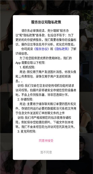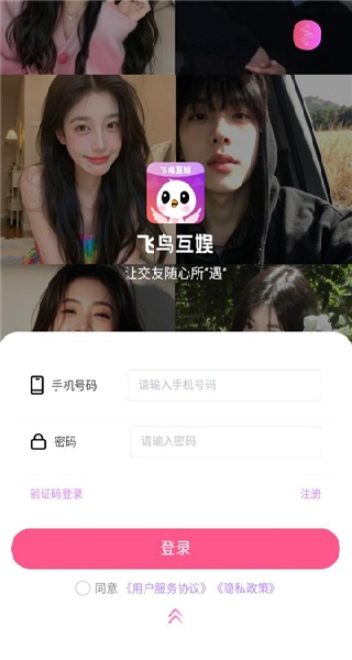 阅读并同意服务协议和隐私政策,点击同意后进入登录页面。