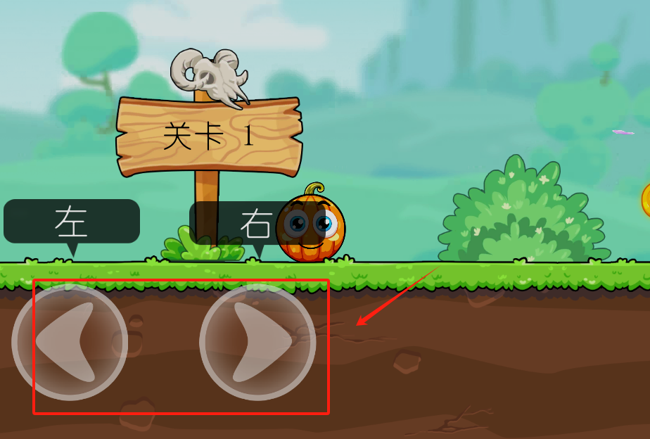 进入游戏后会看到关卡的起始界面,想要控制角色的左右移动,可以点击下方的左右黑色按钮或土地上的箭头按钮,便于快速适应游戏操作。