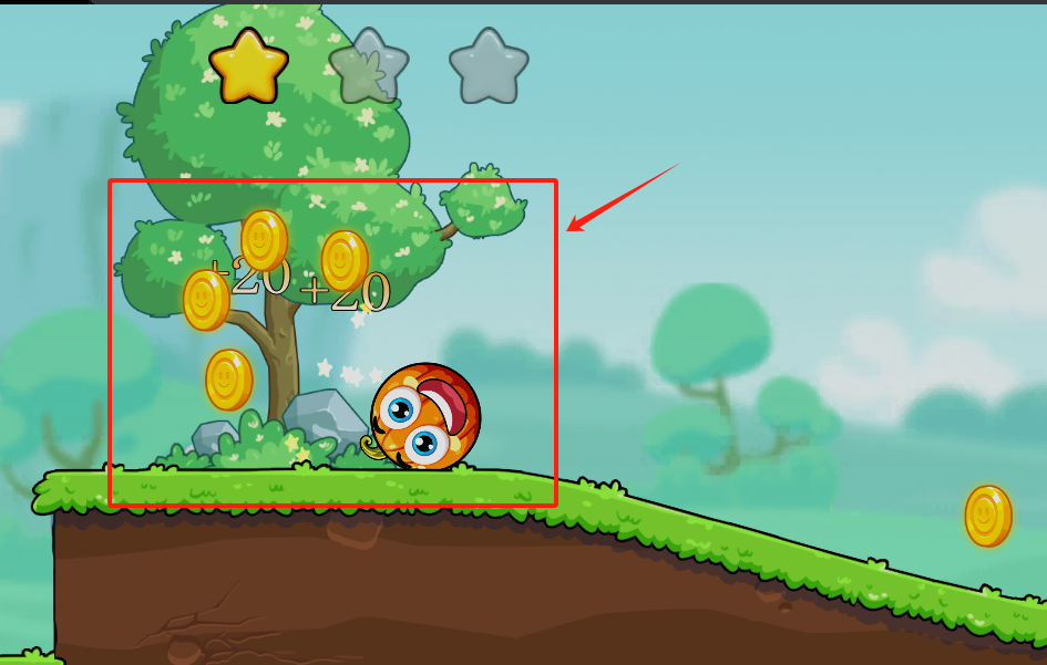 当发现树上悬挂的金币时,可以控制角色靠近并获取,成功获得金币后会有相应的分数提示,增加游戏的趣味性和成就感。