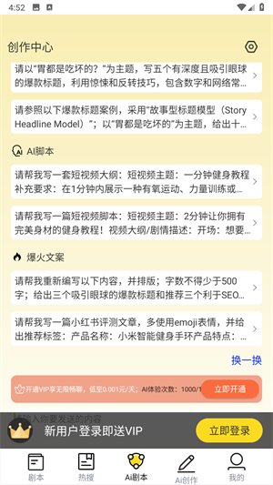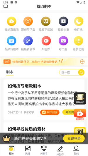 如果需要撰写脚本,可以使用AI剧本功能,系统将帮助您生成高质量的文案,提升直播质量。