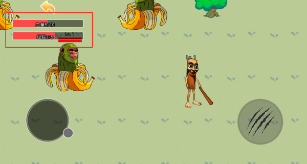 看左上角的角色状态,击败一个一级怪物获得一金币,受到攻击掉一点血。