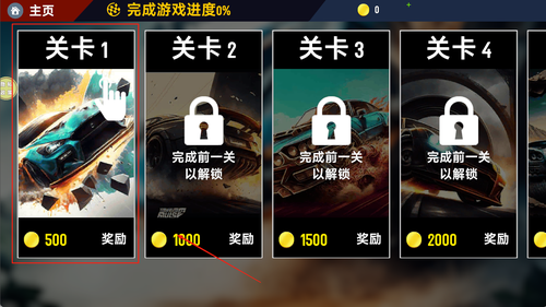 完成赛事中的目标,撞毁对手或取得第一名,将获得星级评价与金币奖励,可以用来升级车辆或进行改装。