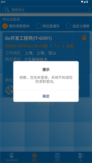 通过岗位搜索功能,求职者可以输入求职意向,或者选择自定义搜索,快速找到合适的职位。