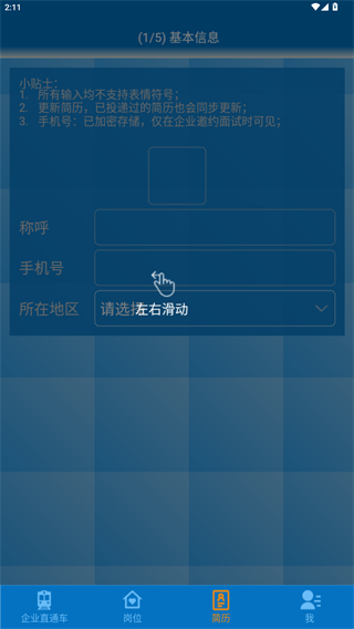 制作简历时,按照系统提示逐步填写个人信息,确保简历内容完整且真实。