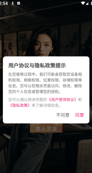 下载并安装相甜软件,打开后会看到用户协议页面,点击下方的同意按钮即可进入下一步。