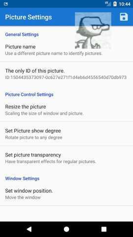 FloatPicture安卓版是一款功能强大的桌面美化工具,允许用户在屏幕上自定义显示任意图片,支持用户通过简单的操作,调整图片的位置、大小及透明度,轻松实现个性化桌面效果。其开源且免费,界面友好,无广告干扰,适合喜欢个性化设计的朋友们使用。