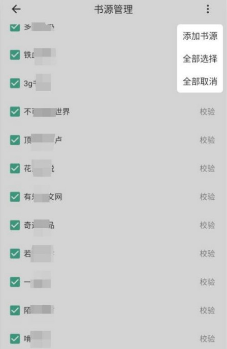 选择全部:在弹出的选项中,选择“全部”这个选项。内置的所有可用书源都添加到你的列表中。