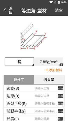 在设备上下载安装金属材料重量计算器软件并打开。