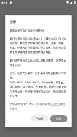 2、首先请阅读并同意用户协议和隐私政策;