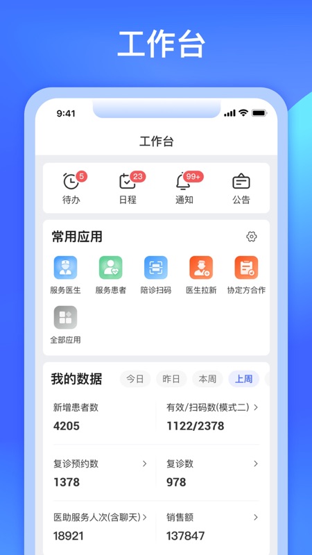 完整的工作台作业系统,帮助医生高效管理日常事务,包括日程安排、通告发布和待办事项,确保每个环节都能顺利进行。