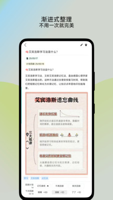 通过记忆模式强化笔记内容,有效防止知识的流失,显著提高记忆的效率,帮助用户更好地掌握学习材料。