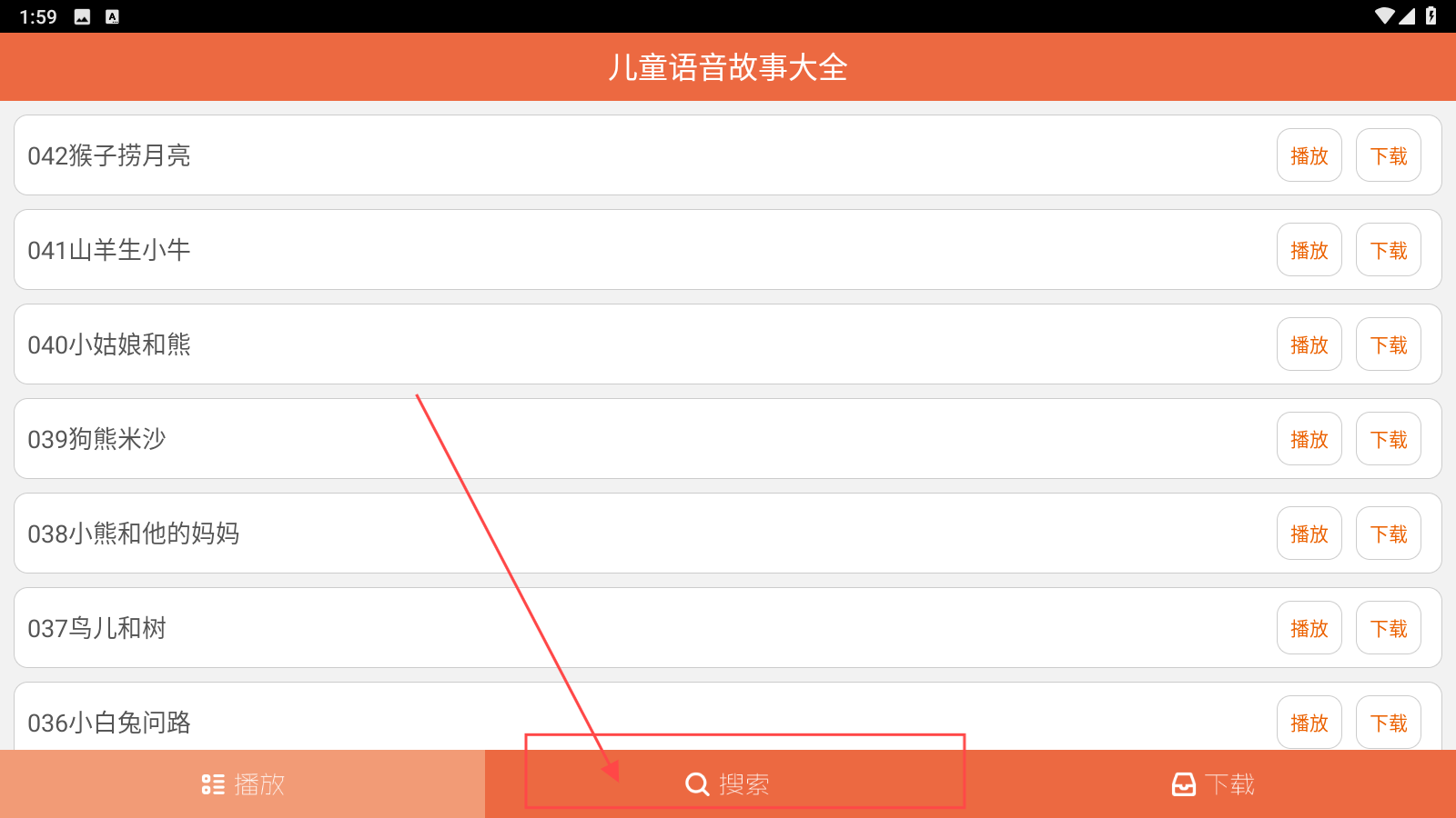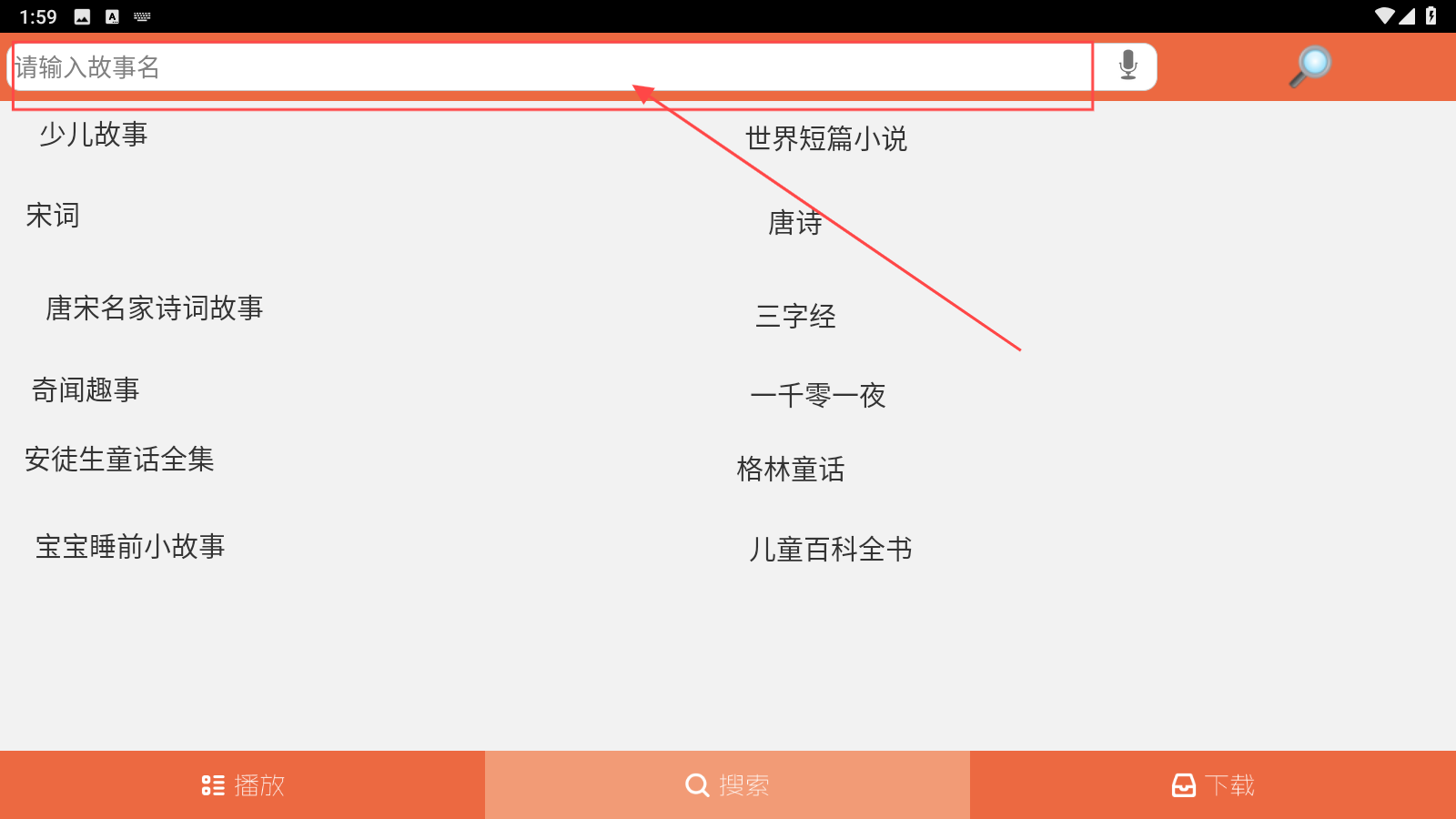 如果在首页找不到想听的故事,可以点击搜索功能,进入搜索界面。