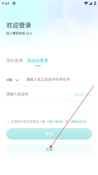 接下来,在登录页面如果未注册,点击【注册】进入新商户注册流程。