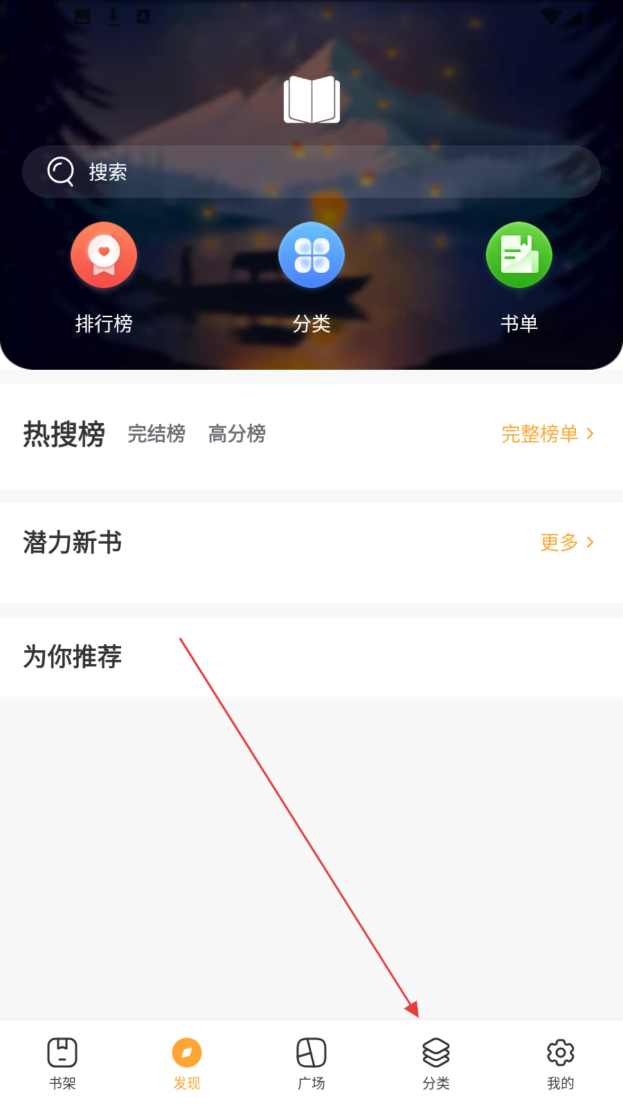 在软件首页点击分类,进入搜索界面,输入小说名称后点击搜索即可快速找到想看的书籍。