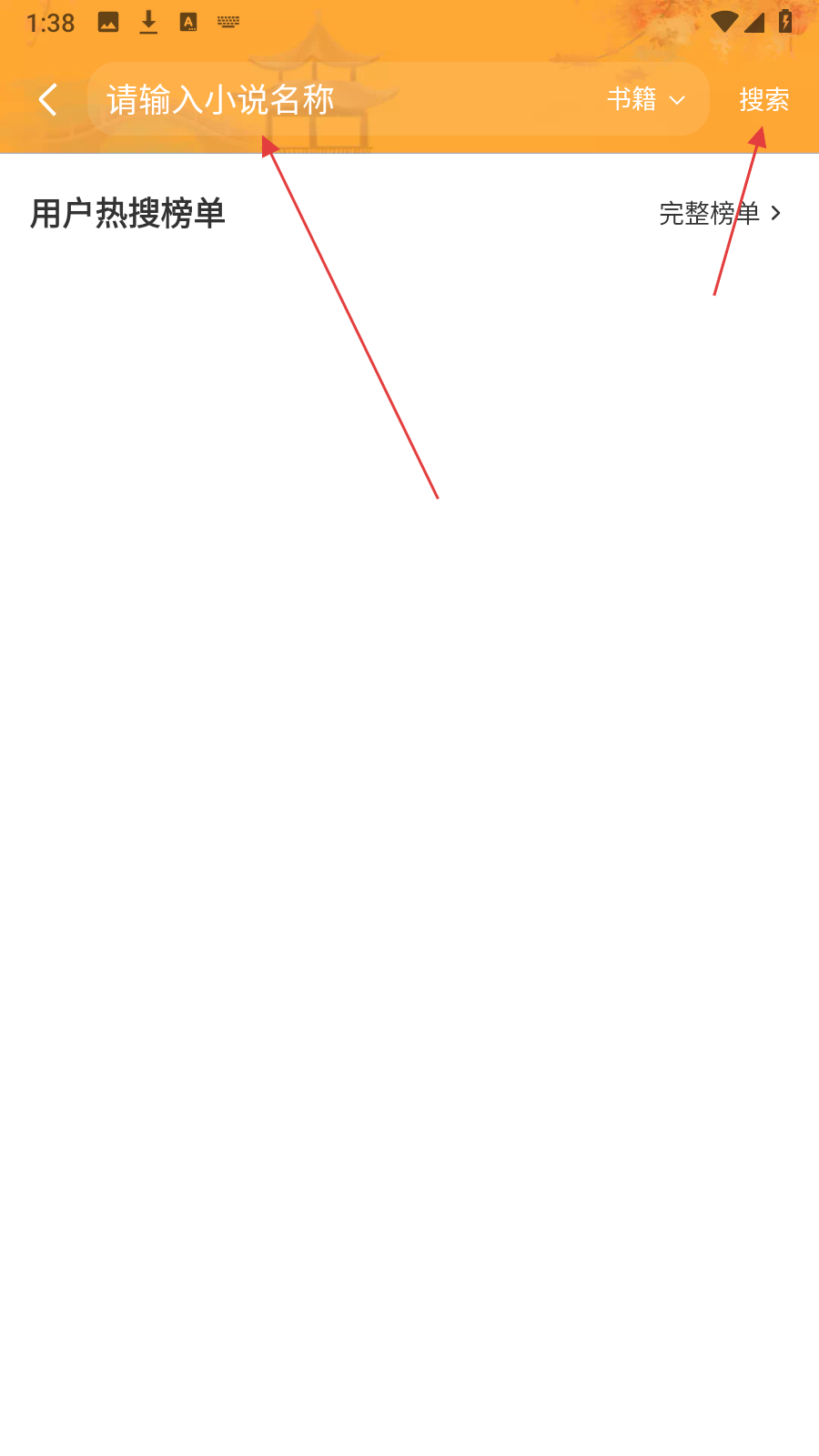 在分类页,点击顶部的搜索按钮,进入搜索界面,输入想要查找的小说名称,点击搜索。