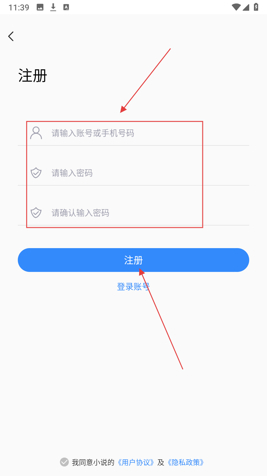 若未注册,请点击【注册账号】按钮,填写相关信息后点击【注册】完成账号创建。