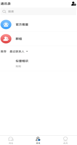搜索好友:点击界面下方的加号键,可以通过账号或昵称快速搜索到好友信息,方便快捷。