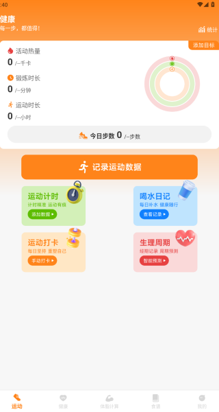 记录运动时长、热量消耗和每日步数,帮助用户全面了解自己的运动情况。