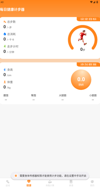 内置计步器,精准记录每天的步数以及走路消耗的热量,为日常活动提供数据支持。