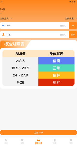 BMI功能可输入身高和体重,生成标准的BMI对照表,帮助用户了解自身健康状况。