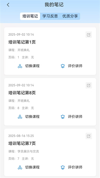 使用我的笔记功能,学员可以查看、编辑或删除自己的笔记,便于管理和复习。