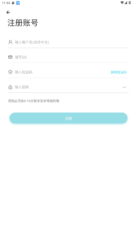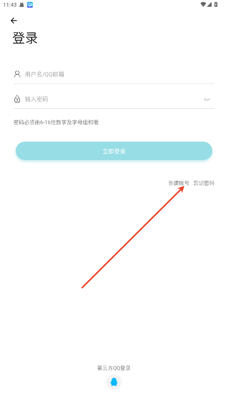 3、使用qq号注册,获取验证码,输入密码即可注册