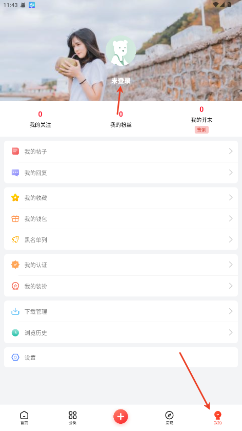 1、在我的内点击未登录