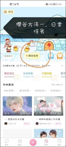 前往首页的“圈子”页面。每天可以在三个不同的圈子进行打卡,每个圈子打卡最多可获得5个谷子(奖励),数量是随机的。