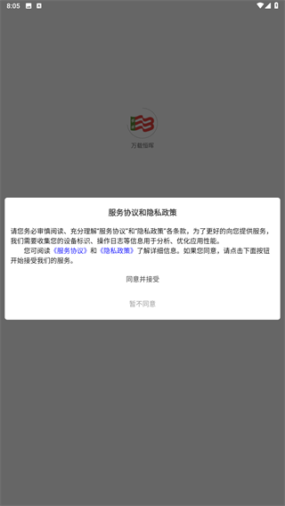 下载并安装万载恒晖软件,打开后查看服务协议和隐私政策,点击同意并接受进入软件。