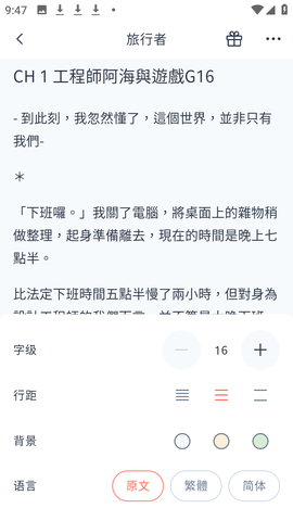 若需切换语言,进入想看的小说界面后,点击屏幕任意位置,选择下方的阅读设定,将语言选项切换为简体中文,系统会自动更新为中文界面。