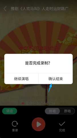4、录制时,可以自行选择是否有原唱,完成后,点击屏幕游戏角的“完成”。