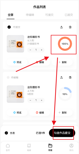便捷的作品提交功能,编辑完成后,一键提交作品,简化了发布流程,确保快速高效的印刷输出。