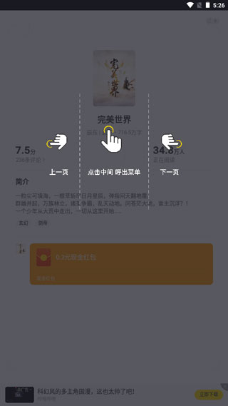 点击搜索结果进入小说页面后,有操作使用简介可供查看。