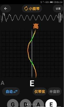 选择对应的乐器类型后,拨动琴弦或吹奏乐器,观察屏幕上指针的移动方向。当指针指向中央刻度且背景变为绿色时,表示音准已达到标准状态。若指针偏左则需要调紧琴弦,偏右则需适当放松。
