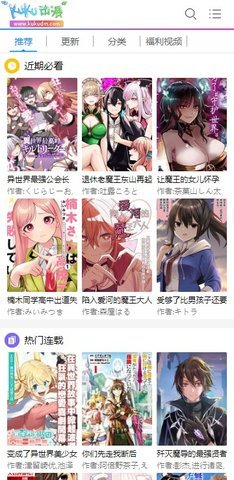1、下载并安装酷酷漫画去广告版后,打开应用,首先会看到主界面,您可以浏览推荐的漫画和最新更新。