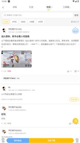 3.下载游戏后,不知道怎么玩,点击社区可查看攻略。