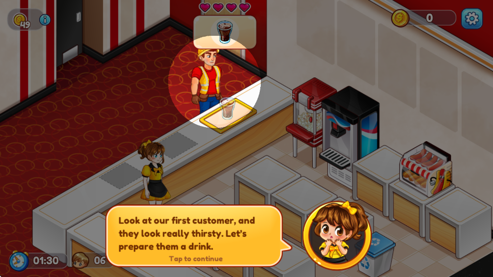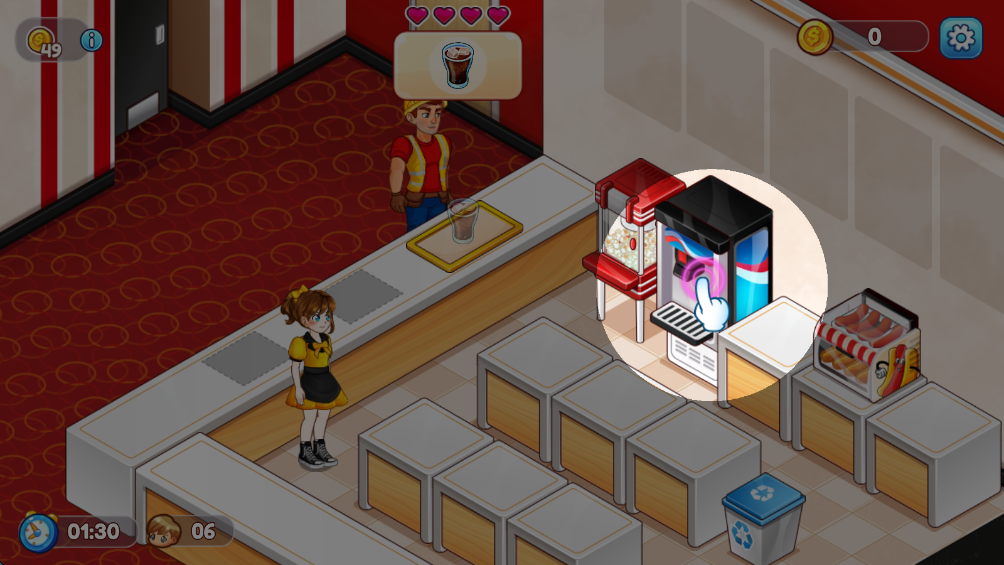 多样化小吃制作:亲手制作来自世界各地的影院小吃,从基础的爆米花到复杂的汉堡和甜品,每种食品都有独特的制作流程,确保游戏过程充满挑战和乐趣。