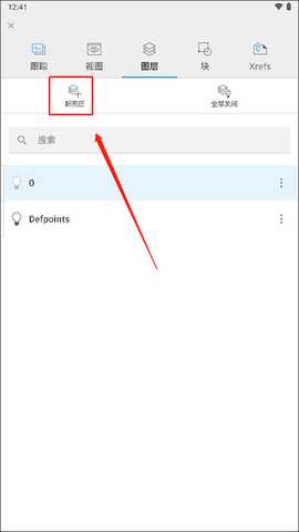 3、在该页面有视图、图层、以及块等,用户可以选择“图层”。