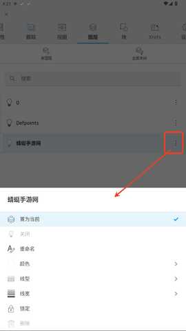 7、点击旁边的三个点还能够对该图层进行设置,其中包括:置为当前、重命名、颜色、线型、线宽以及锁定等操作。