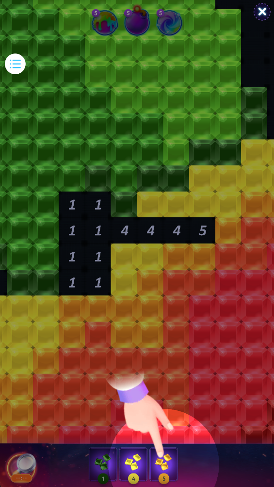 接下来注意观察上方显示的数字,这些数字代表着需要填充的宝石种类。
