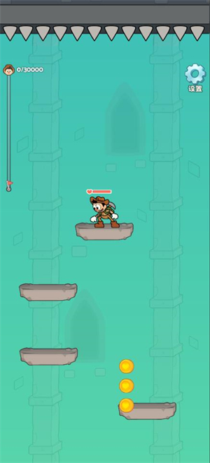 不断向下移动,直到成功抵达最底部。完成关卡后,你将获得收集的金币,利用这些金币可以购买道具或进行角色升级,提升你的游戏体验。