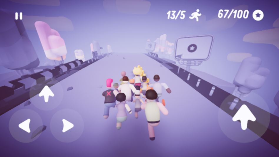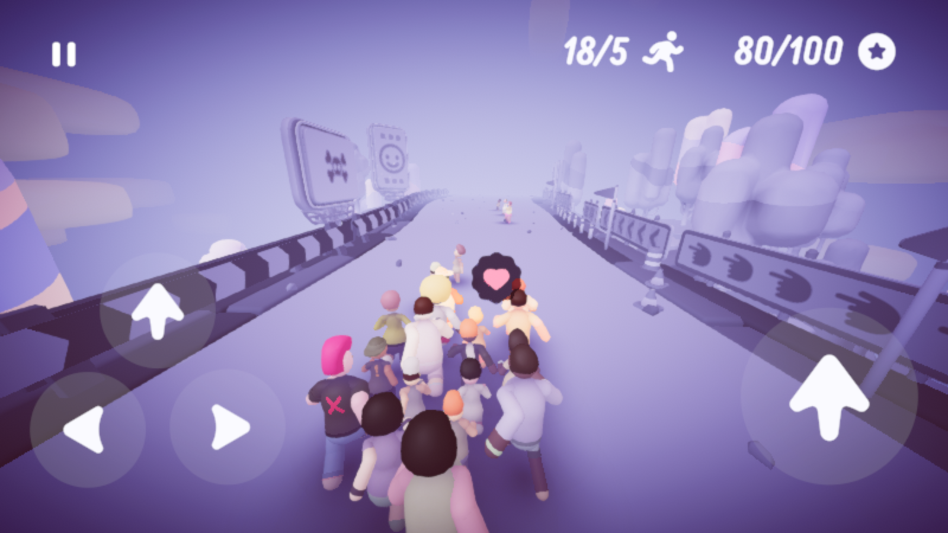 操控你的小人队伍开始跑酷,注意观察前方的障碍物,及时调整队伍的动作以避免碰撞。