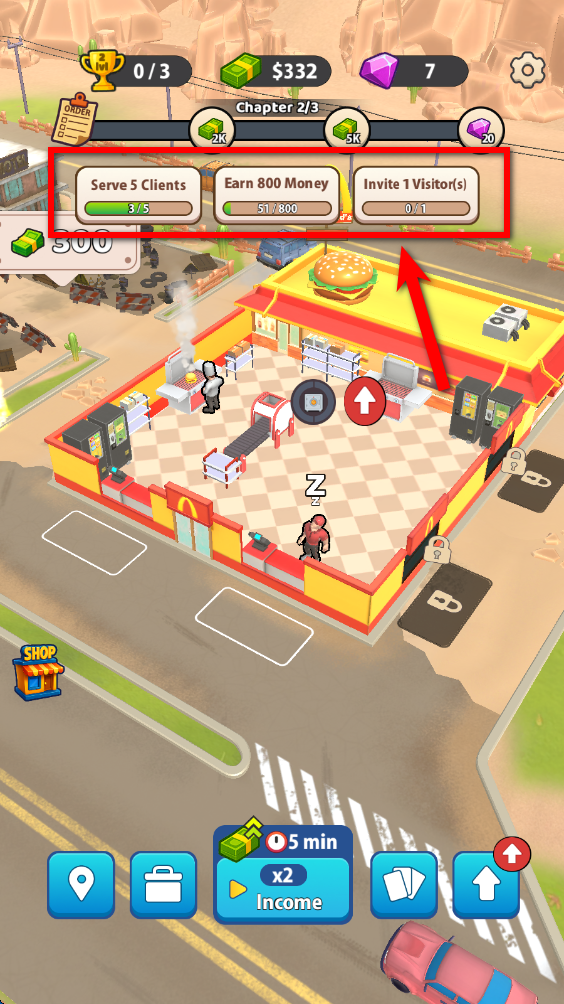 通过不断升级店铺的属性,可以提高赚取的费用,进而实现更大的经营目标。