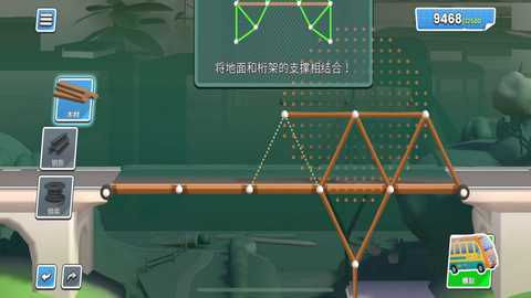 进入游戏后,需要使用提供的木材和其他材料来建造桥梁。可以根据地形和预算灵活调整材料的使用,确保桥梁的稳定性。